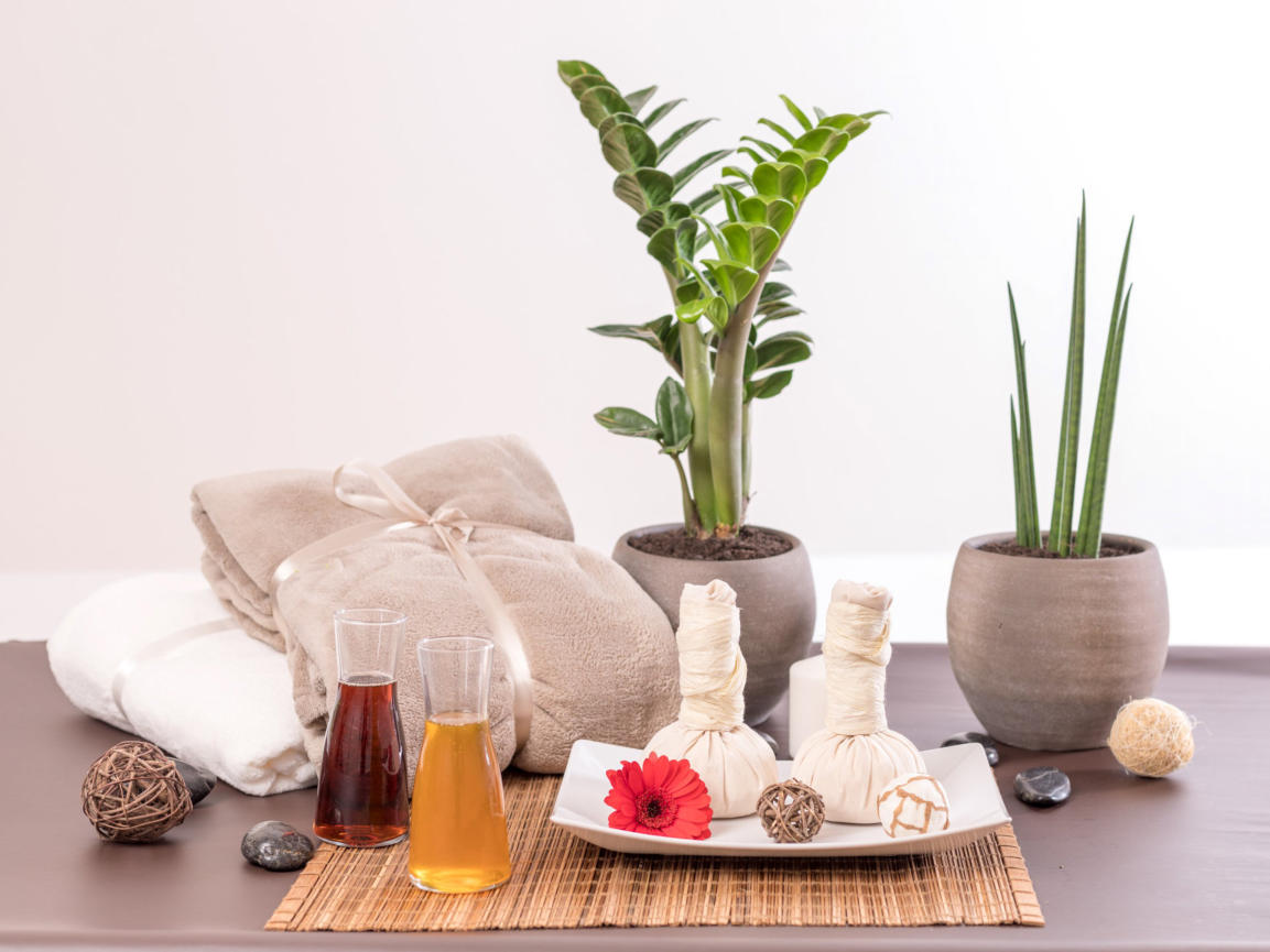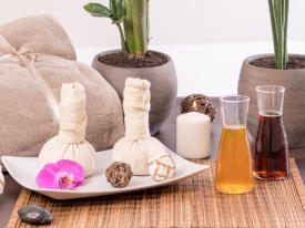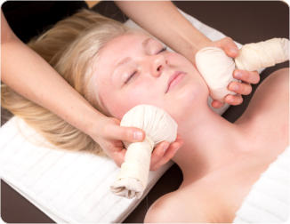 wohltuende Massage mit warmen Kräuterstempeln regt